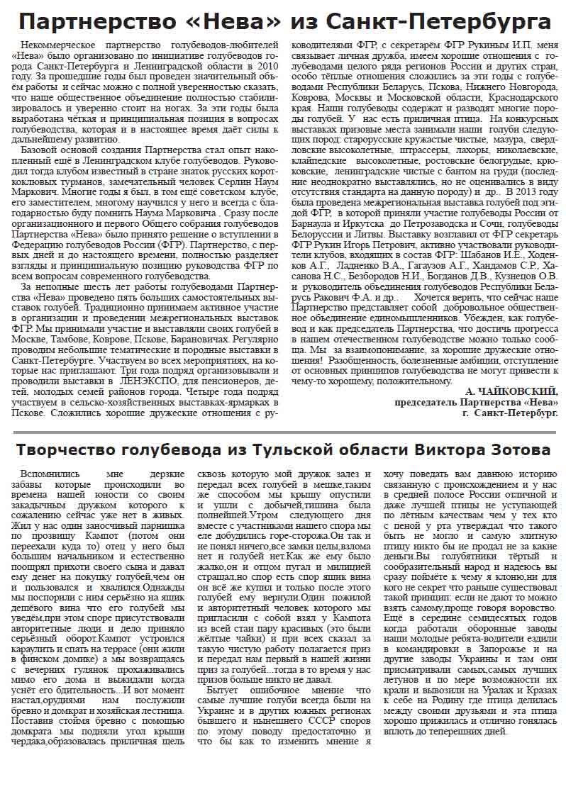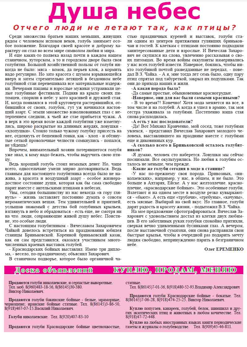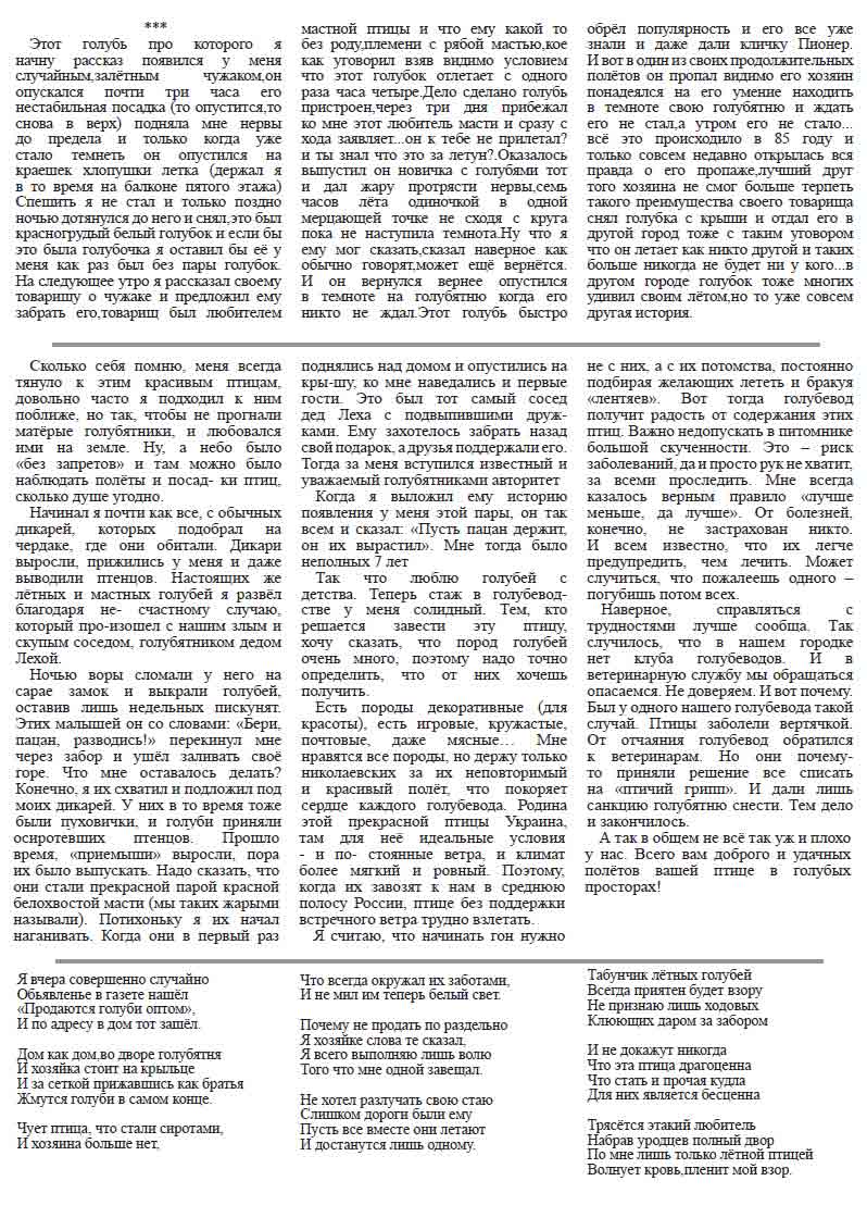 - Тема: Свежий номер газеты "Голубеводство"