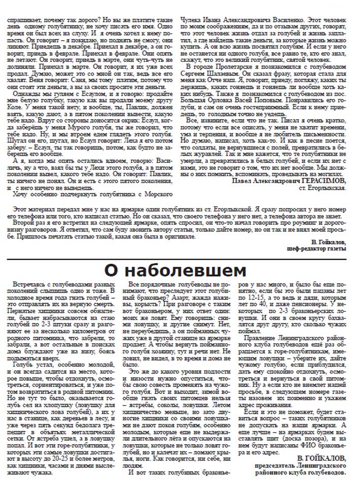 Читайте очередной номер газеты нашего клуба "Голубеводство"